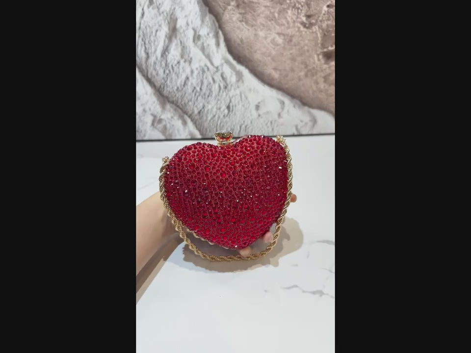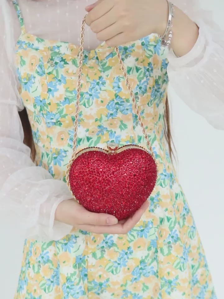 Diamond Heart Shoulder Clutch with Gold Chain